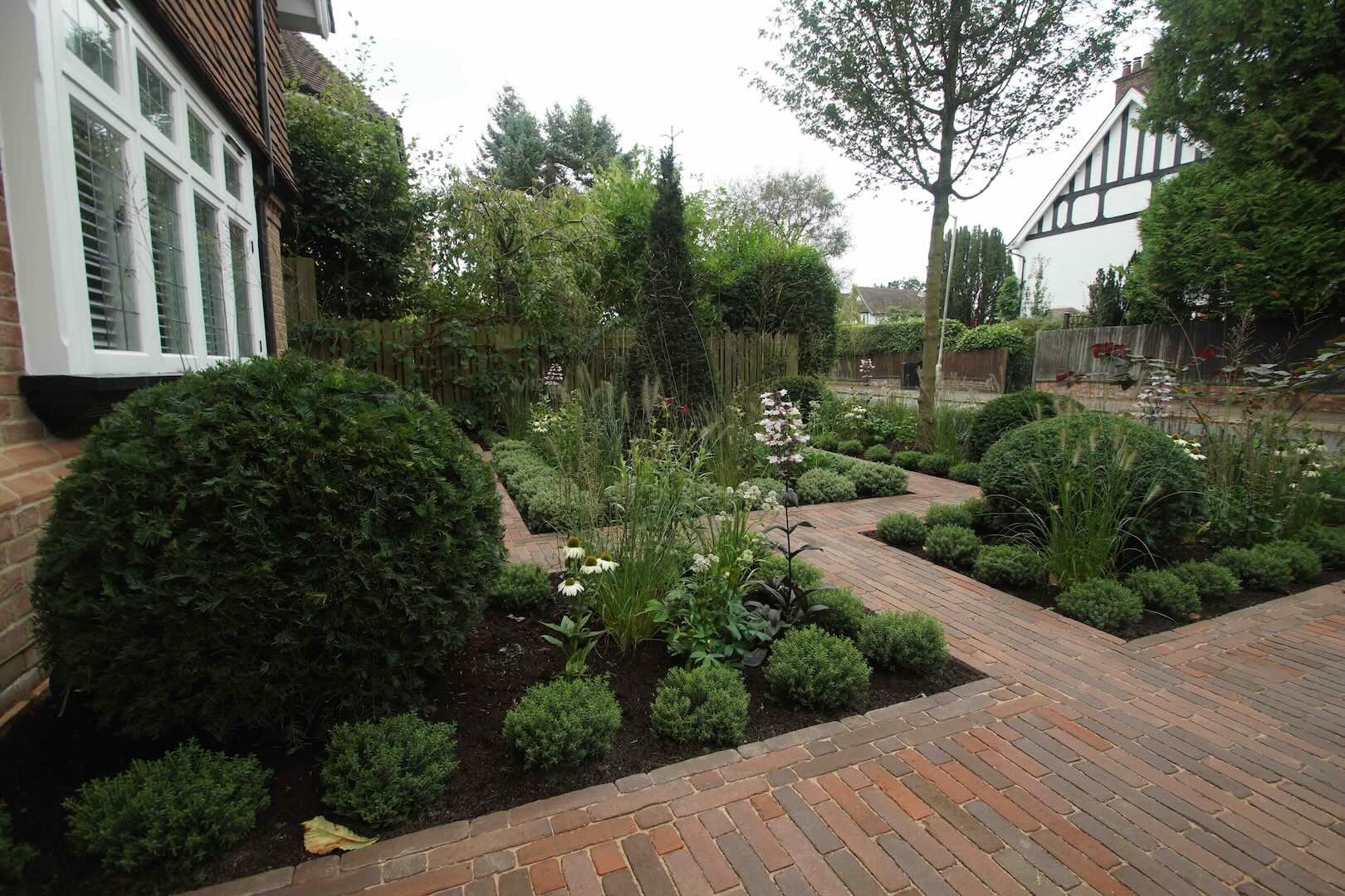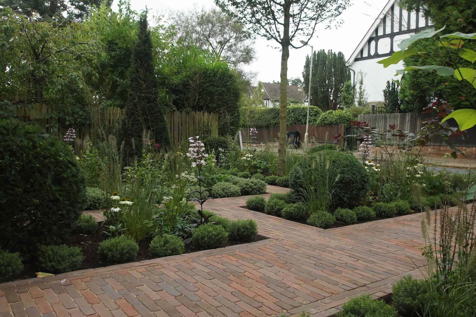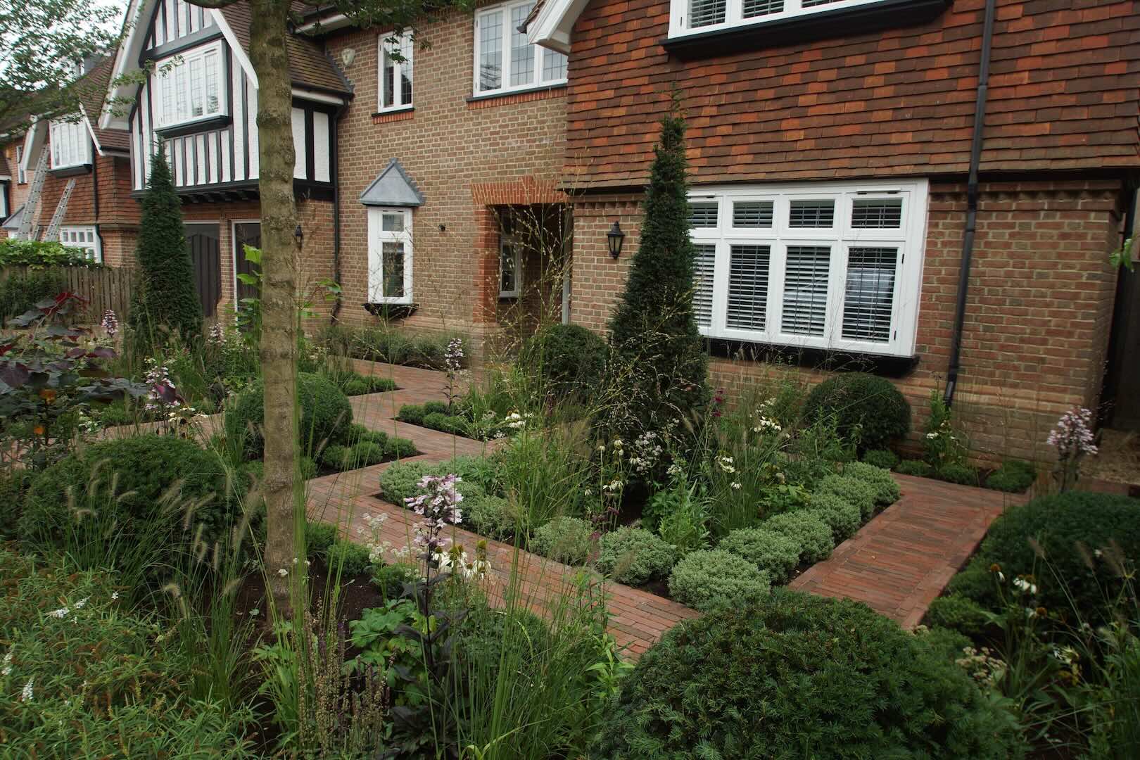 All of this sits within a carefully considered framework of brick pathways, which guides you through the space and helps define the garden’s layout. The result is a contemporary take on the parterre style: a garden that feels both structured and relaxed, formal yet approachable, with layers of texture, colour, and movement throughout.